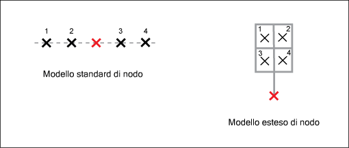 Pilone con due conduttori. La sezione trasversale standard visualizza due punti di snap per due ulteriori conduttori. La sezione trasversale standard consente di acquisire i dati, quella estesa di visualizzarli.