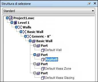 È possibile configurare i parametri di conversione dei file Revit per modificare il modo in cui il file viene visualizzato nella Struttura di selezione. Ad esempio, è possibile dividere il file in livelli per organizzare la gerarchia del modello per File al livello superiore, e poi per Categoria, Famiglia, Tipo e Istanza. Vedere Divisione di file Revit in livelli. Inoltre, per i file di Revit, le parti secondarie vengono denominate in base al materiale con cui vengono realizzate. Ad esempio, un muro può essere suddiviso in parti secondarie composte da asfalto o alluminio.