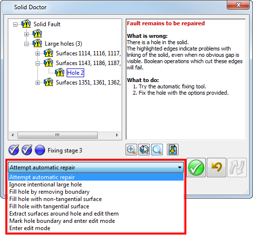 Occorre rimuovere tali difetti, in quanto posso causare la mancata esecuzione delle ulteriori operazioni sulla feature del solido.