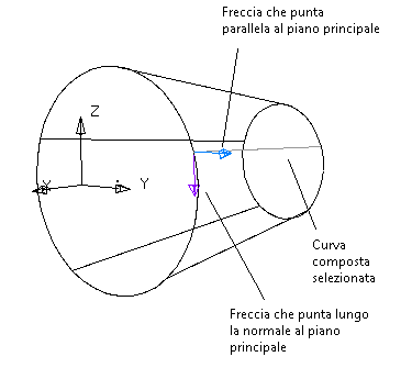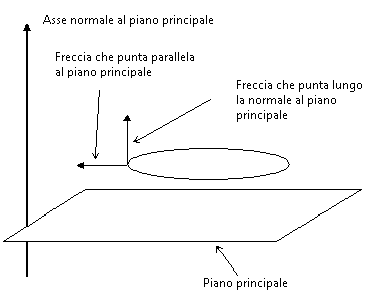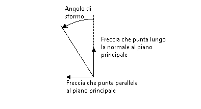 Con Normale al piano principale selezionato in Misura angolo da, una freccia è parallela al piano principale e l'altra all'asse normale al piano principale (vedere qui di seguito).