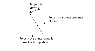 L'angolo di sformo è misurato tra le frecce come mostrato qui di seguito.