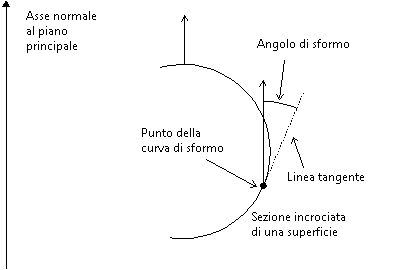 I punti delle curve di sformo sono posizioni sulle superfici in cui l'angolo tra la tangente e la freccia è uguale all'angolo di sformo.