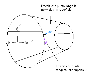 Con Tangente alla superficie sottostante selezionato, le frecce puntano come mostrato qui di seguito.