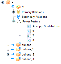 Una nuova diramazione è aggiunta alla struttura dell'assieme. Lo stato della Power Feature è indicato dall'icona visualizzata accanto alla feature: