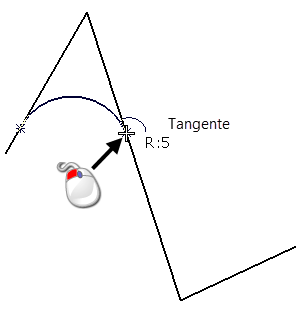 Se si sposta il cursore sopra un oggetto wireframe e il Cursore intelligente è attivato, la parola Tangente è visualizzata dove è definita la tangenza, altrimenti (ad esempio, se è visualizzata la parola Fine) il programma presume che stia venendo specificato un punto iniziale.