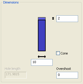 È possibile modificare le dimensioni del foro inserendo valori nella caselle sulle quote. Per quanto concerne i fori filettati, è anche possibile modificare le dimensioni selezionando opzioni Standard e Dimensioni differenti.