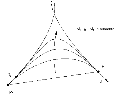 Tali punti di controllo definiscono anche le direzioni della tangente (D0 e D1) e le magnitudini della tangente (M0 e M1) presso i punti finali (P0 e P1).