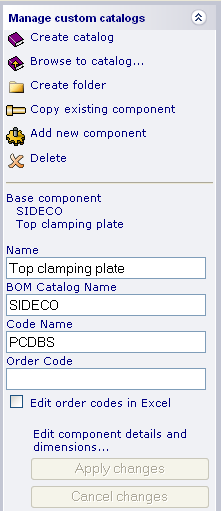 - Nella finestra di dialogo Selezionare un componente, fare clic su Gestisci cataloghi personalizzati per visualizzare le opzioni.