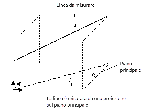 Una linea è misurata da una proiezione sul piano principale, visualizzata nell'immagine seguente.