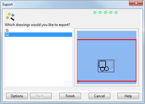 Usare questa pagina per selezionare i disegni da esportare. Questa pagina è visualizzata solo quando disegni multipli sono associati con il modello.
