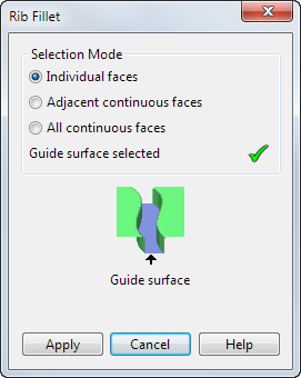 Se una faccia del solido è circondata da pareti, è possibile sostituire la faccia con un raccordo di nervatura.