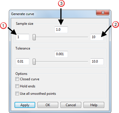 - Usare il dispositivo di scorrimento Dimensioni campione per controllare il numero di punti da campionare per creare un'approssimazione più uniforme della nuvola per la curva. Il valore minimo è 1.