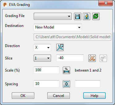 Usare la finestra di dialogo Sviluppo EVA per definire lo sviluppo di una suola EVA, tenendo conto delle proprietà di espansione della schiuma EVA.
