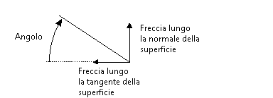 Entrambe le frecce sono usate per calcolare l'angolo dell'estensione della superficie. L'angolo è misurato dalla freccia lungo la tangente alla superficie fino a quella che punta lungo la normale alla superficie: