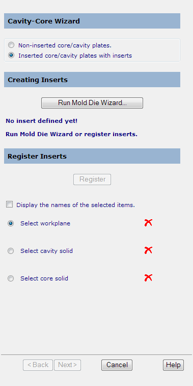 È possibile: registrare solidi come piastre punzone e matrice, o fare clic su Avanti per creare piastre non inserite utilizzando la procedura guidata.