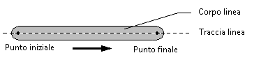 disegna estremità arrotondate su linee selezionate. Tutte le linee dalle estremità arrotondate sono giustificate al centro. I loro punti finali sono all'interno dei raggi finali, come mostrato qui di seguito.