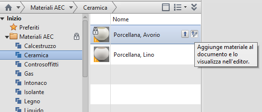 - Selezionare il materiale in una delle seguenti posizioni del Browser dei materiali: