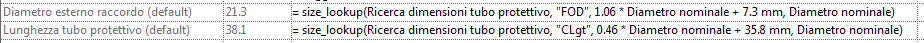 Le tabelle di ricerca contengono dati di tipo, consentendo di specificare più dimensioni di una parte senza creare un tipo di famiglia distinto per ciascuna dimensione. Revit fornisce una funzione size_lookup che consente la lettura dei valori necessari da un file CSV esterno.