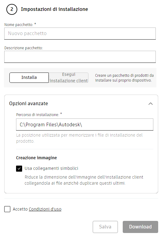 Il processo è identico a quello della creazione di un'installazione client. Per informazioni dettagliate sulla configurazione dell'installazione personalizzata, fare riferimento a Installazioni client di Revit.