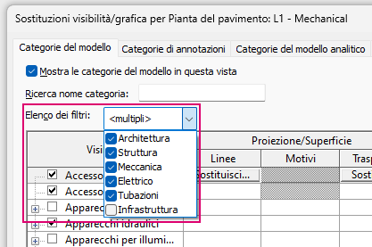 In base al feedback dei clienti, i filtri della disciplina nella finestra di dialogo Sostituzioni visibilità/grafica sono stati aggiornati.