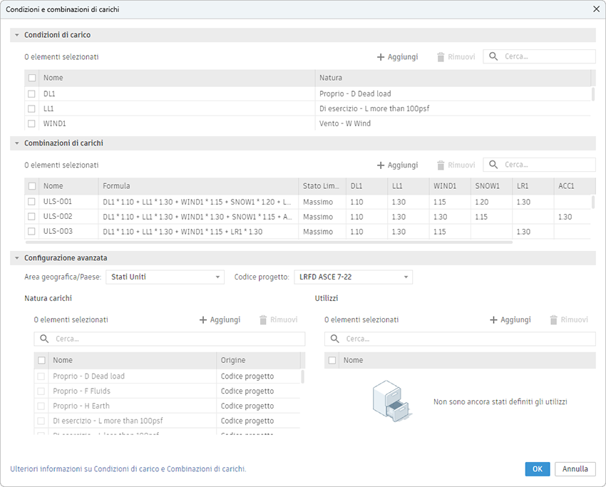 Per ulteriori informazioni, vedere Condizioni e combinazioni di carichi (2025.3).