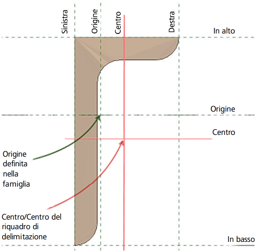 In alcuni casi, l'origine della famiglia di un elemento del telaio strutturale può non essere allineata al centro del riquadro di delimitazione dell'elemento.