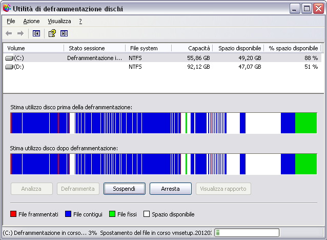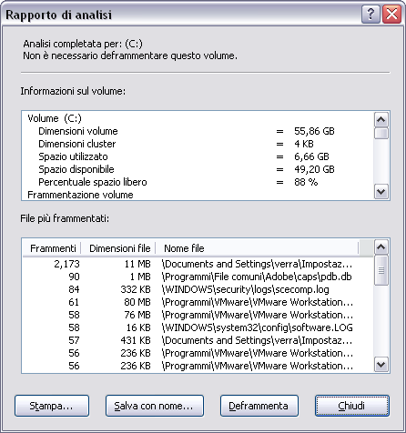 Anche la frammentazione del disco può influire in misura significativa sulle prestazioni di Autodesk Vault Server. La maggior parte delle edizioni di Windows fornisce uno strumento apposito in grado di rilevare in che modo i file del computer sono memorizzati sul disco.