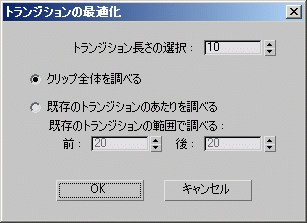 既存のトランジション付近に最適化トランジションを作成します。既存のトランジションの付近を検索するには、前後のフレーム値を設定します。