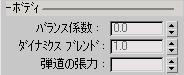 これらのパラメータは、Biped の重心に適用され、重力(重力加速)と滞空時間を基に character studio が空中での Biped の軌道を計算するときに使用されます。また、着地時の膝の曲がり具合(弾道の張力)や、Biped オブジェクトがバランスを維持するための適応性(バランス係数)などの計算にも使用されます。