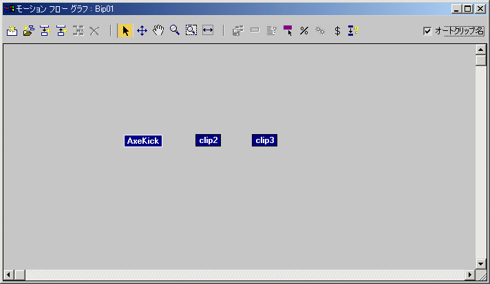 モーション フロー グラフに clip1、 clip2 などという名前のクリップ アイコンが表示されます。
