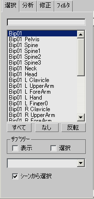 [選択](Select)パネルの機能は、標準の 3ds Max選択フロータに似ています。