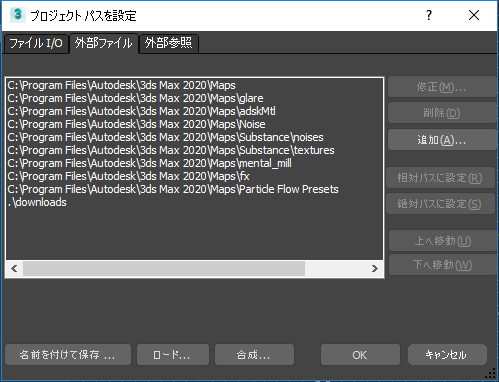 3ds Max では、シーン、イメージ、DirectX 効果、フォトメトリックおよび MAXScript ファイルといった異なる種類のユーザ ファイルを検索するのに、保存されているさまざまなパスが使用されます。 このようなパスをカスタマイズするには、[プロジェクト パスを設定](Configure Project Paths)コマンドで開く[プロジェクト パスを設定](Configure Project Paths)ダイアログ ボックスを使用します。このコマンドは、新しいフォルダを追加して、シーン、イメージ、プラグイン、バックアップなどを編成するときに参照する場合に便利です。