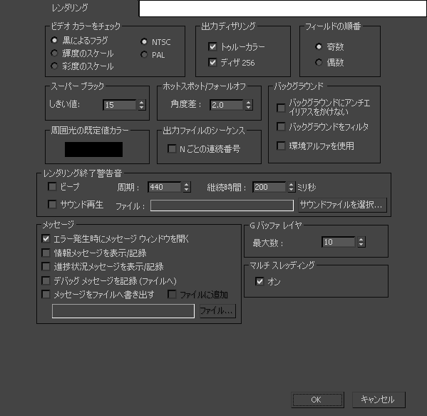 - レンダラーがエラーを検出したときに、エラー メッセージが表示されます。このチェック ボックスにチェックマークが付いている場合、[メッセージ](Messages)ウィンドウが開き、ウィンドウ内にエラー メッセージが表示されます。既定値ではチェックマークが付いています。