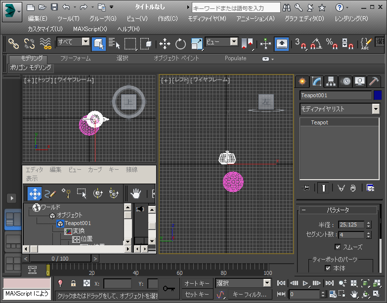 これら 3 つのオブジェクトは、4 つのビューポートすべてに表示されます。