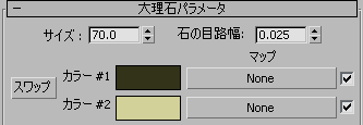 大理石マップは着色されたバックグラウンドに対して着色された石目の大理石模様のサーフェスを生成します。3 色目は自動的に生成されます。