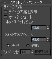 ターゲット スポットまたはフリー スポットを作成したり選択すると、[スポットライト パラメータ](Spotlight Parameters)ロールアウトが表示されます。