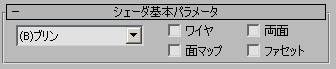[シェーダ基本パラメータ](Shader Basic Parameters)ロールアウトで、標準マテリアルで使用するシェーダの種類を選択できます。マテリアルの見え方に影響する追加コントロールもあります。