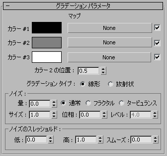 中間色の中心点を制御します。位置の範囲は 0 から 1 です。0 のとき、カラー 2 はカラー 3 と置換されます。1 のとき、カラー 2 はカラー 1 と置換されます。