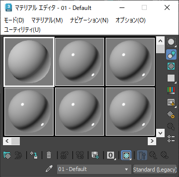 サンプル スロットの下および右にあるマテリアル エディタのツール