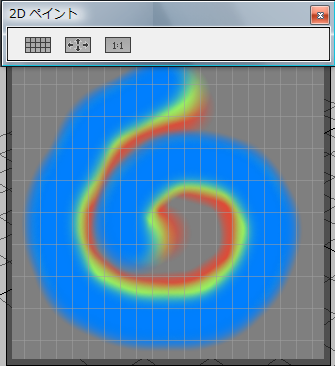 2D ビューでは、ビューポートにスーパーインポーズされたフラットな四角形の 2D ペイント ウィンドウに、マップをペイントすることができます。