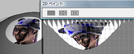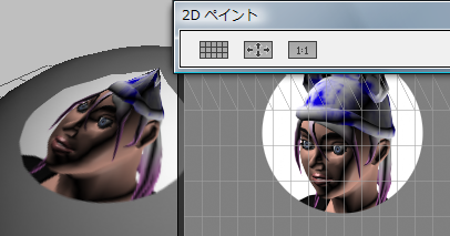 2D ペイント ウィンドウで適用されたイメージ(右)は、球のサーフェスでは歪んで見える
