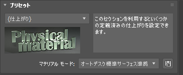 またプリセット(テンプレート)を、カスタマイズされたマテリアルの作成開始点として使用できます。ドロップダウン リストからテンプレートを選択します。一般的な指示をともなう説明が右側のペインに表示されます。