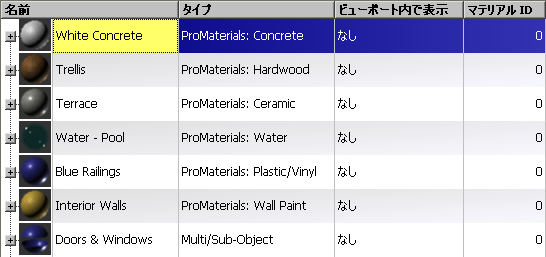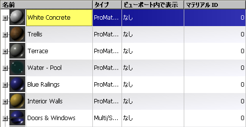 マテリアル、マップ、またはサブマテリアルの種類が表示されます。