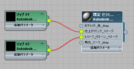 マップ ボタン(またはスレート マテリアル エディタ ノードのワイヤリング)をクリックすると、マップがマテリアルに割り当てられます。
