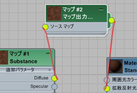 各マップ出力セレクタ ノードを順番にダブルクリックすると、1 番目が[拡散反射光](Diffuse)チャネルに、2 番目が[法線](Normal)チャネルに設定されていることがわかります。