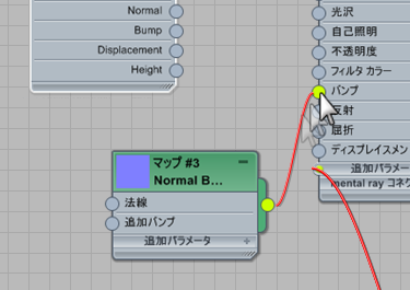 ワイヤリングを実行すると、ここでも 2 つのノードの間にマップ出力セレクタ ノードが 3ds Max によって自動的に挿入されます。