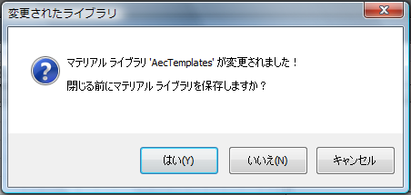 3ds Max は、変更をライブラリに保存するかどうかを尋ねるメッセージを表示します。[はい](Yes)をクリックします。