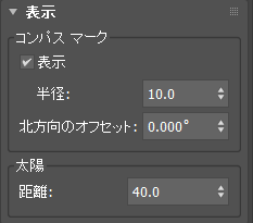 - ビューポートに表示されるコンパス マークから太陽までの距離です。
