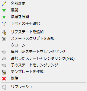 これらのオプションは、階層内のステート項目を右クリックすると表示されます。