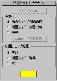 - コマンド パネルの[断面シェイプ パラメータ](Section Parameters)ロールアウトで、[シェイプを作成](Create Shape)をクリックし、表示されたダイアログ ボックスに名前を入力して、[OK]をクリックします。